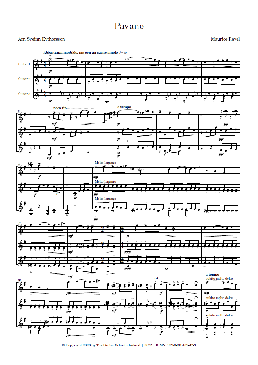 Pavane for a Dead Princess is originally a piano piece by Maurice Ravel, composed in 1899 and dedicated to the Princess de Polignac. Score and parts.