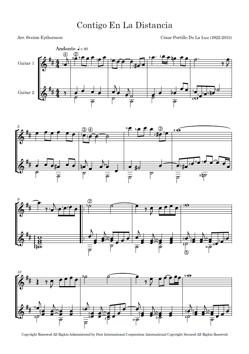 The Guitar School offers 3627 pages of sheet music for guitar by 105 distinct authors.