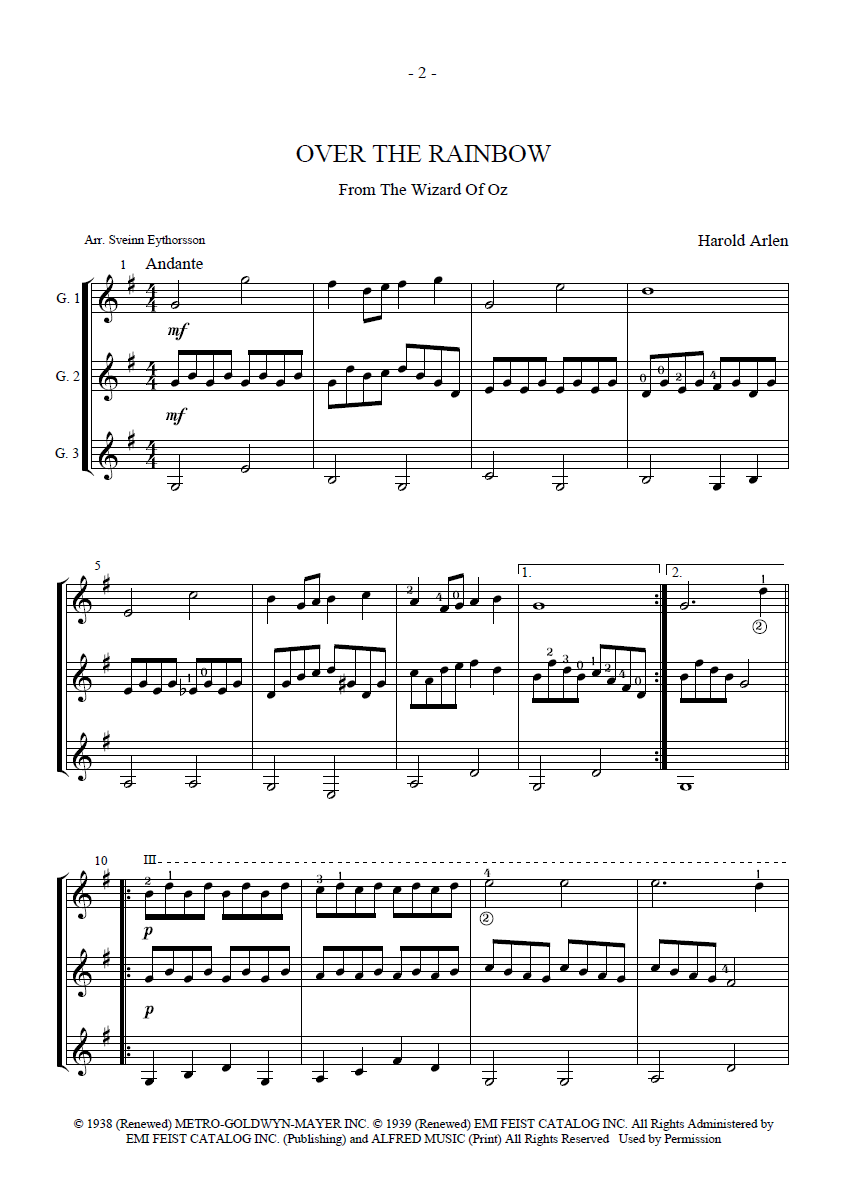 Also known as "Somewhere Over the Rainbow". From the 1939 film The Wizard Of Oz. Arrangement for three guitars by Sveinn Eythorsson. Score only.