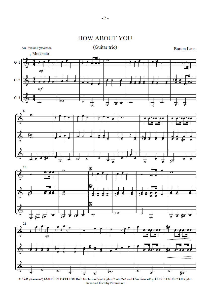 Introduced in the film Babes on Broadway (1941) by Judy Garland and Mickey Rooney. Arrangement for three guitars by Sveinn Eythorsson. Score only.